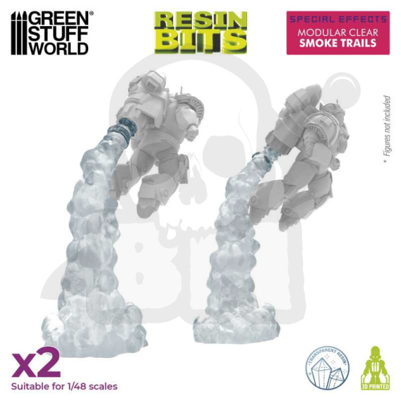 Przezroczyste efekty dymu dla plecaków odrzutowych są idealne, aby nadać realistyczny charakter miniaturom, które wykorzystują ten typ napędu. Dlatego są kompatybilne z miniaturami 1/48 dowolnej gry miniaturowej, a szczególnie kompatybilne z figurkami generałów, kapitanów, wodzów wojennych, takich jak ork Zagstruck, lub dowolną inną miniaturą wyposażoną w plecak odrzutowy z pojedynczym wylotem dymu.