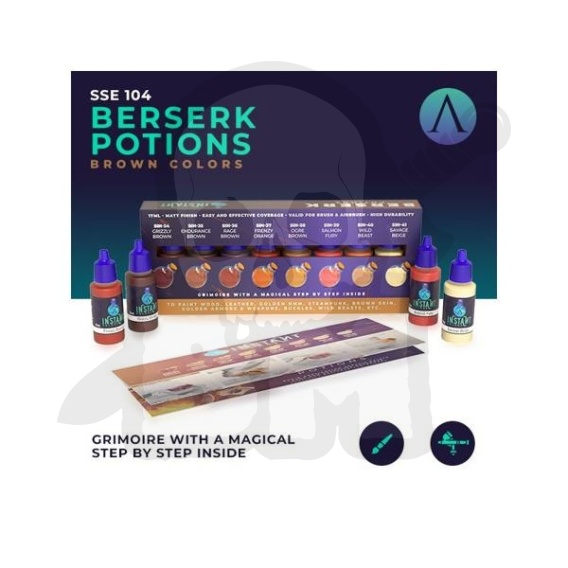 Zestaw Berserk Potions Paint Set to wszystko, czego potrzebujesz, by popaść w szał malowania! Znakomite odcienie brązu oraz paleta kolorów ich podkreślających, pozwolą Ci na jeszcze bardziej realistyczne futra oraz skóry potężnych bestii. Wszelkie zamsze czy drewniane elementy tarcz staną się drobnostką z tym kompletem barw.