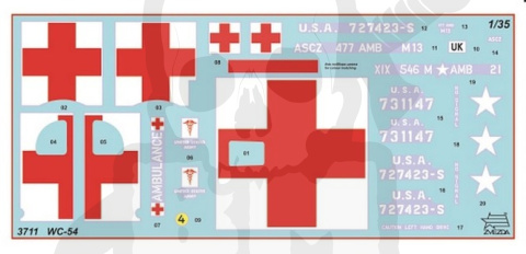 W zestawie kalkomanie dla wersji amerykańskiej, brytyjskiej i sowieckiej