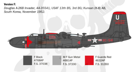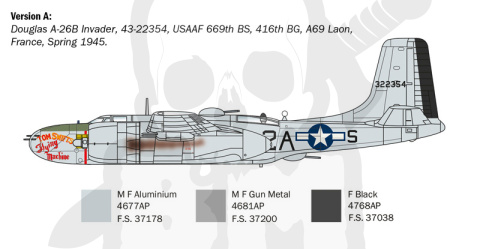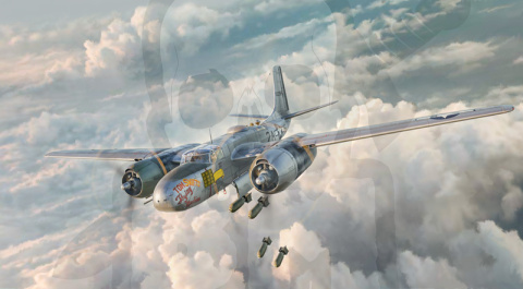 A-26 Invader, dwusilnikowy samolot szturmowy zaprojektowany i wyprodukowany przez amerykańską firmę Douglas, wykazywał się niezwykłą trwałością operacyjną. Pierwsze jednostki dotarły na linię frontu podczas II wojny światowej w 1944 roku, a późniejsze warianty brały udział we wszystkich ważniejszych konfliktach lat 50. i 60. XX wieku, takich jak wojna koreańska i indochińska, a nawet wojna w Wietnamie. Najpowszechniej produkowaną wersją był model „B”, wyróżniający się ciężkim uzbrojeniem. Zamknięta część dziobowa mieściła od 6 do 8 karabinów maszynowych Browning M2 kalibru .50 (12,7 mm), co znacznie zwiększało jego siłę ognia. Ze względu na solidną konstrukcję Invadera, w jego dziobie można było umieścić również działa kal. 20 mm lub 37 mm, a także haubicę 75 mm. Napędzany dwoma niezawodnymi silnikami gwiazdowymi Pratt & Whitney R-2800 „Double Wasp”, każdy o mocy 2000 koni mechanicznych, Invader mógł osiągnąć prędkość maksymalną 570 km/h nawet przy pełnym obciążeniu operacyjnym.