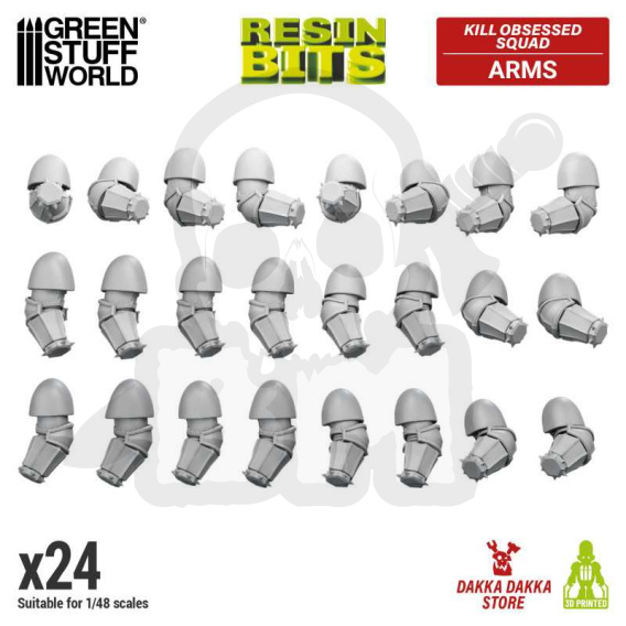 Ten zestaw zawiera 24 ramiona i pozwoli Ci złożyć własnego Kosmicznego Marines, składając pozostałe elementy z projektów DakkaDakka Store, a także przekształcić i dostosować własnych Kosmicznych Marines. Te bitzy z żywicy są drukowane w 3D i przypominają ABS, co zapewnia elastyczność i odporność na przypadkowe stłuczenie i idealnie nadają się do miniatur w skali 28/32 mm, a także są kompatybilne z Twoimi ulubionymi grami wojennymi i grami planszowymi.