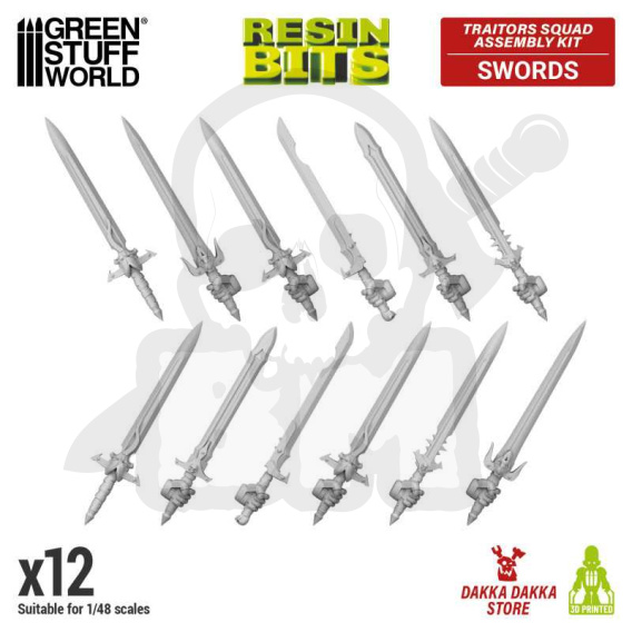 Ten zestaw zawiera 12 mieczy (2 dla nieręcznych, 5 dla praworęcznych i 5 dla leworęcznych) i pozwoli ci zbudować własnych Kosmicznych Marines poprzez złożenie pozostałych elementów z projektów DakkaDakka Store, a także na konwersję i dostosuj własnych Kosmicznych Marines. Te bitz z żywicy są drukowane w 3D i przypominają ABS, co zapewnia elastyczność i odporność na przypadkowe pęknięcie i są idealne do miniatur w skali 28/32 mm, a także są kompatybilne z twoimi ulubionymi grami wojennymi i grami planszowymi.