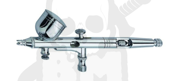 Jest to aerograf dwufunkcyjny co oznacza, że przyciskiem regulujemy zarówno ilość podawanego powietrza (ruchy w dół i w górę) jak również ilość farby (ruchy do tyłu i do przodu).