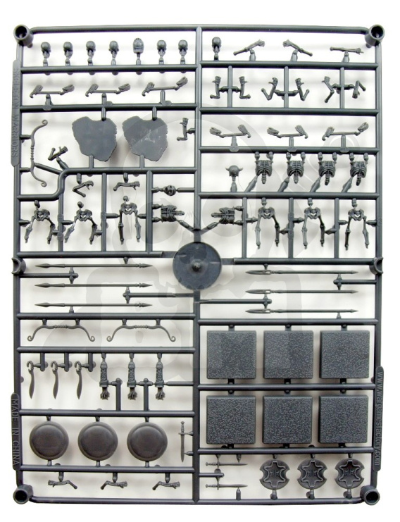 Jedna wypraska z sześcioma plastikowymi figurkami szkieletów w skali 28 mm