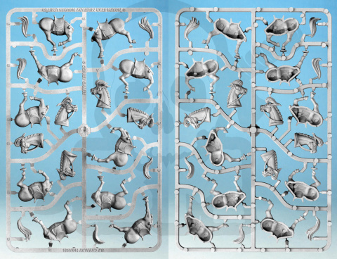 This box set contains enough parts for you to build 15 Elf Cavalry figures. We provide you with enough weapon options to make them all spearmen, all hand weapon and shield or any combination of the two. Each frame also contains a standard bearer and officer option. So you could have a giant unit of 15 Cavalry with an officer and standard bearer, or three units of 5 Cavalry with mixed weapons and a standard/ officer each!