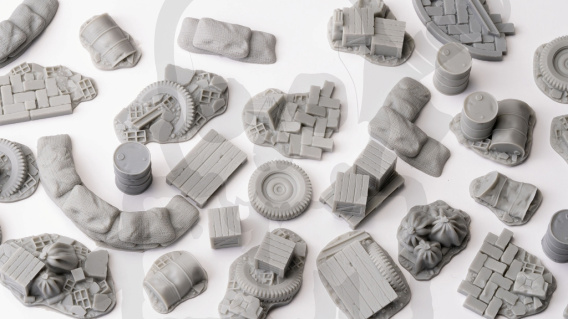 Drobne elementy z żywicy do samodzielnego pomalowania i przyklejenia, idealnie nadadzą się do urozmaicenia makiet, dioram, figurek i podstawek.