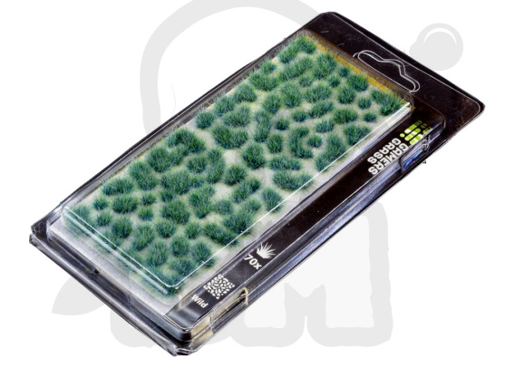 Jeden plastikowy arkusz zestawu Alien Turquoise o wymiarach 14,5 cm x 6,5 cm zawiera ok. 70 naturalnie wyglądających kępek o nieregularnych kształtach i wielkości 6 mm.