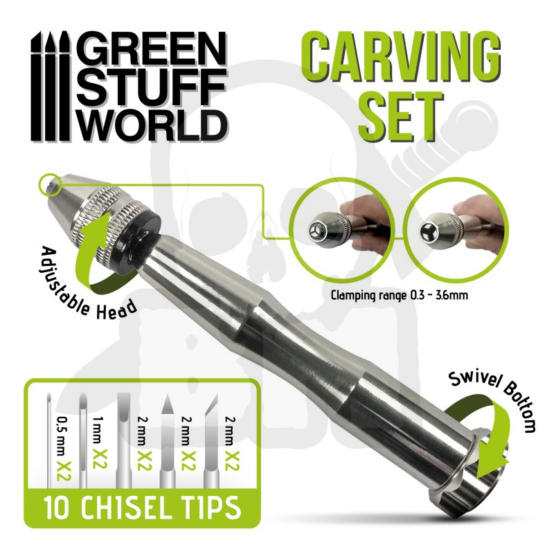Zestaw narzędzi dłutowych zawierający 10 precyzyjnych końcówek wykonanych ze stali szybkotnącej wolframowej do rzeźbienia w drewnie, miękkim metalu, plastiku i żywicy. Solidna aluminiowa rączka pozwoli na łatwą wymianę końcówek w dogodnym momencie.