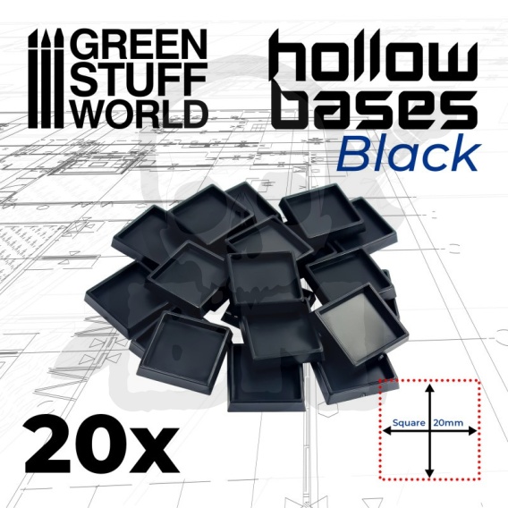 • Hollow Plastic Bases Black podstawki 20x20mm 20 szt.