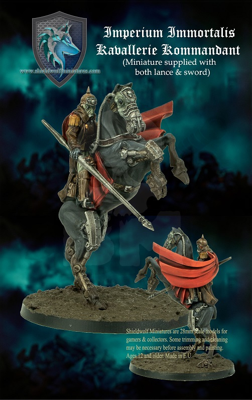 Ten produkt składa się z jednego modelu żywicy poliuretanowej Imperium Immortalis Kavallerie Kommadnant. Pozwala na użycie podwójnej broni, szabli lub lancy.