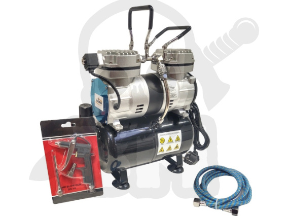 Do kompresora dwutłokowego jako gratis dokładamy wąż i pistolet do przedmuchiwania.