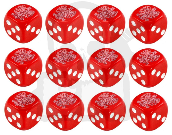 Kostki czerwone K6 16mm 12szt. kości Orzeł