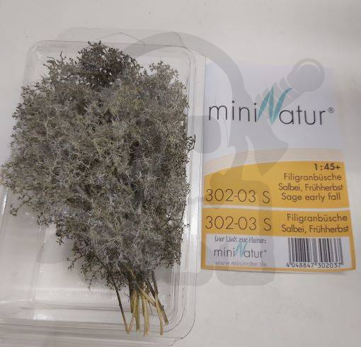 Zestaw MiniNatur: Filigranowy wczesnojesienny krzew szałwii zawiera Filigranowy wczesnojesienny krzew o realistycznych liściach. Przyda się każdemu, kto tworzy dioramy w skalach 1:45, 1:32 oraz figurek 28-30 mm. Łatwe do docinania.