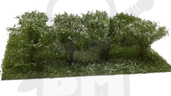 W zestawie MiniNatur: Kwitnące na biało krzewy z gotowym podłożem otrzymasz osiem sztuk, wysokich na około 3 centymetry krzewów kwitnących na biało wraz z pasem zieleni pod spodem. Znakomite dla skal H0 (1:87), TT (1:120), N(1:160) oraz Z (1:220).