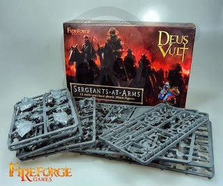 This box set contains twelve 28mm multi-part plastic Sergeants at Arms with a mixture of barded and unbarded horses. You can build several types of Sergeants with a choice of many weapons among which you'll find crossbows for assembling Mounted Crossbowmen units. Figures are 28mm sized, supplied unpainted and require some assembly.