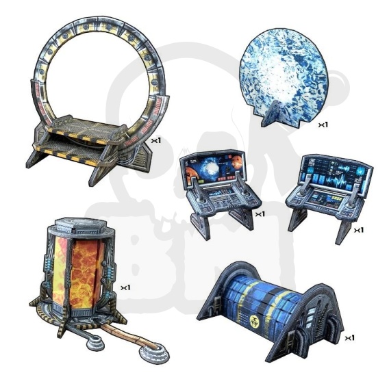 Ten pakiet ulepsza Twój stół do gier science fiction o mistyczną bramę. Ma dużą komorę reaktora i konsole komputerowe do sterowania portalem i nadaje nowy wymiar Twoim grom. Wir w środku można usunąć.
