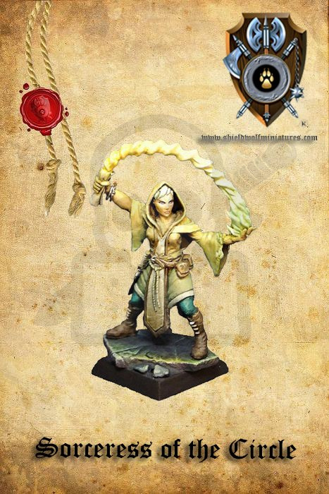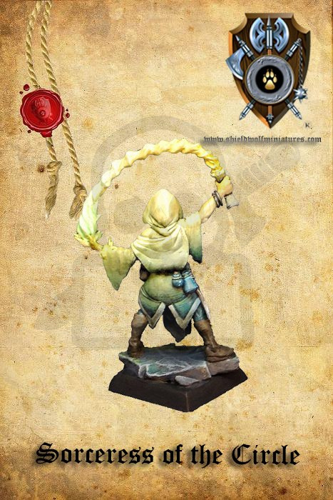 This product consists of one Human Sorceress of the Circle miniature made of fine quality polyurethane resin. A plastic 20mmx20mm base is included with this product.
