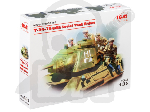 Zestaw zawiera model czołgu średniego T-34-76 i cztery figurki radzieckich żołnierzy.