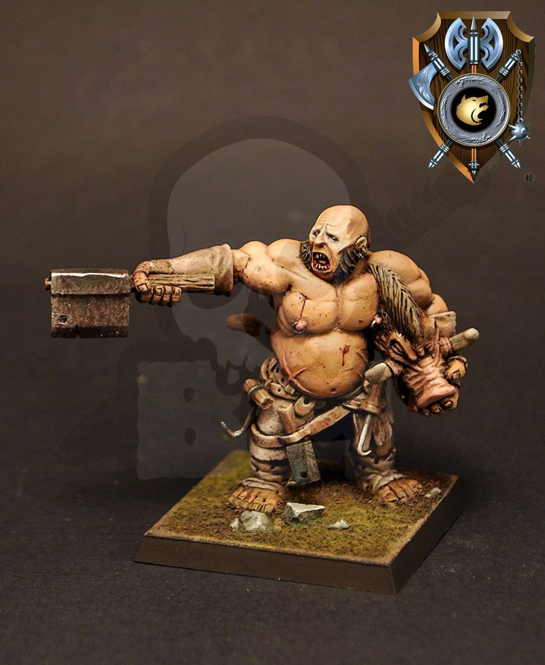 This product consists of one Talliareum Ogre Butcher miniature made of fine quality polyurethane resin. A plastic 40mmx40mm base is included with this product.