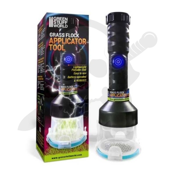 Aplikator Green Stuff World's Grass Flock jest zasilany baterią 9 V (brak w zestawie), która zapewnia statyczny prąd elektryczny do ładowania włókien stada, powodując ich pionowe ułożenie na macie, papierze lub innych materiałach rzemieślniczych, dając realistyczny Efekt 3D. Aplikator do kłaczków trawy jest wydajny i zapewnia doskonałe rezultaty, jest bezprzewodowy i wymaga tylko baterii 9V, więc nie są potrzebne żadne niepotrzebne kable. Lekka i chroniona konstrukcja pozwala na bezpieczniejszą i czystszą pracę w miejscu pracy.