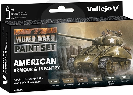 Vallejo 70203 Zestaw Model Color 6 farb - WWII American Armour & Infantry