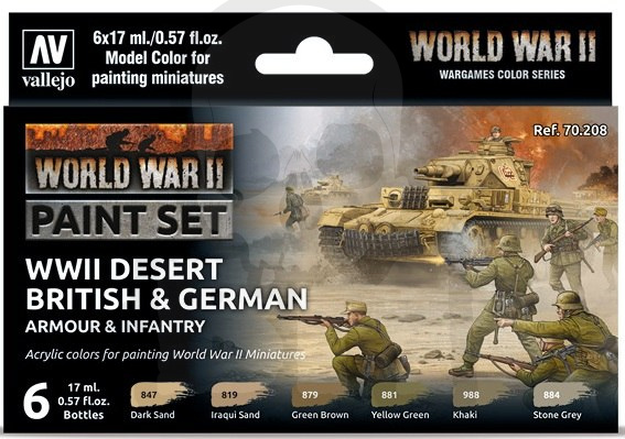 Vallejo 70208 Zestaw Model Color 6 farb - WWII Desert British & German Armour & Infantry