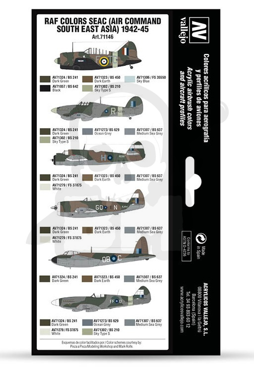 Vallejo 71146 Zestaw Model Air War RAF Colors SEAC (Air Command South East Asia) 1942-1945