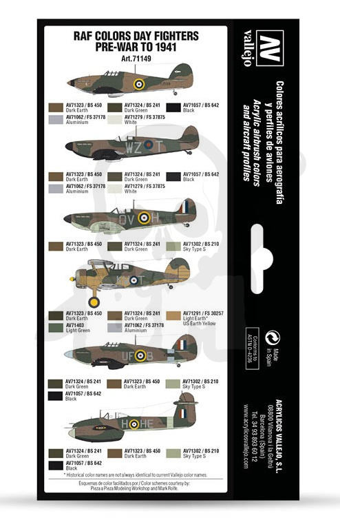 • Vallejo 71149 Zestaw Model Air War RAF Day Fighters Pre-War to 1941